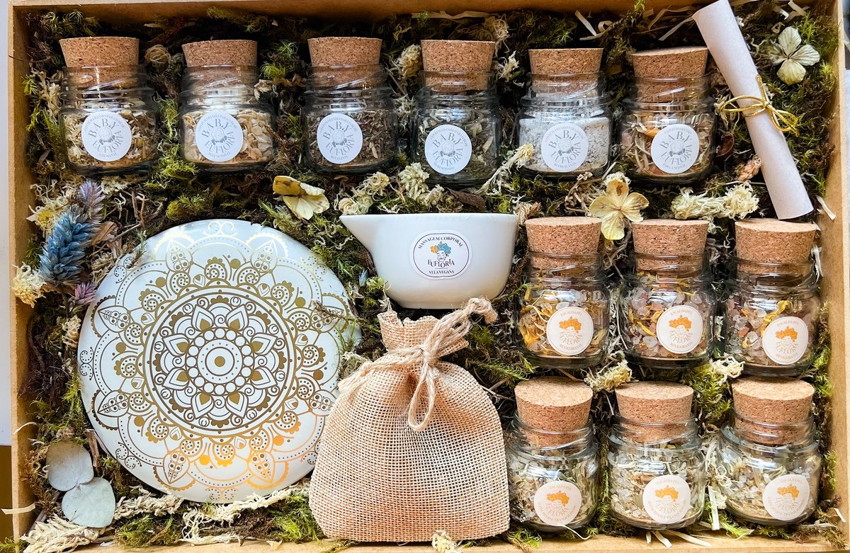 Pensando nesse período, desenvolvemos esse Kit com elementos naturais,  feitos artesanalmente utilizando conhecimentos ancestrais, com responsabilidade e afeto para acolher e cuidar, levando até você sensações e experiências reais e significativas. Todos os elementos que compõem as caixas são energizados com cristais, Reiki e intencionados para que cumpram seu propósito.