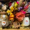 A Decoração da Caixa Afetiva é composta por palhas, musgos, folhas e flores naturais desidratadas e varia conforme as cores e variedades disponíveis.