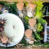 A Decoração da Caixa Afetiva é composta por palhas, musgos, folhas e flores naturais desidratadas e varia conforme as cores e variedades disponíveis.